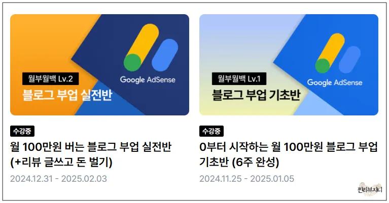 애드센스 강의는 다양하고 유튜브에는 무료로 들을 수 있는 영상도 많기 때문에 맞는 영상을 찾아보시는 걸 권장드립니다.